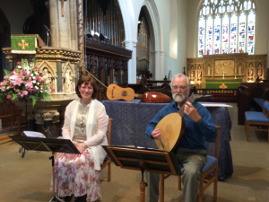 Mary Morgan and Steve Graham gave a lovely tea-time recital of music for Soprano and Lute on Saturday 27 June at St Mary Magdalene Church, Taunton. A wide range of composers and moods were explored, including music by Ford, Campion, Morley and of course John Dowland. In addition to the songs there were also solos on lute and theorbo. The programme was greatly enjoyed by an appreciative audience, and a splendid tea was provided afterwards by the church. The collection raised a total of £96 for MusicSpace, bringing the overall amount raised by our “Music for Mind & Body” series so far to £594.10.