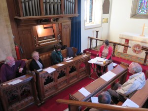 Hilary Shaw (SOCA committee member) gave a presentation about this aspect of an organist’s creative life. The attractively situated church at Cheddon Fitzpaine is worth a visit in its own right, and it was made to feel warm and welcoming for the occasion, with refreshments in an interval. The organ is a two manual tracker by Osmond of Taunton dating from about 1900, with a concave straight pedal board and a ratchet swell pedal – a bit of a challenge in other words!